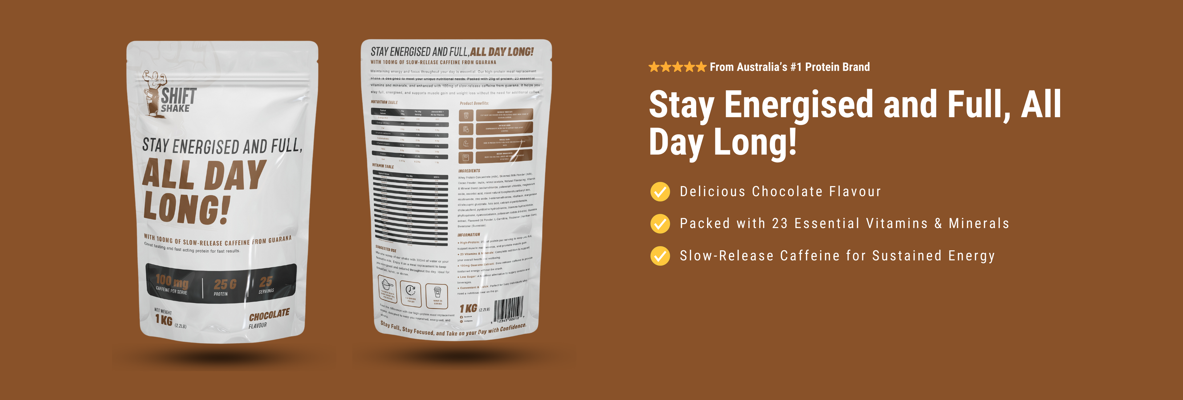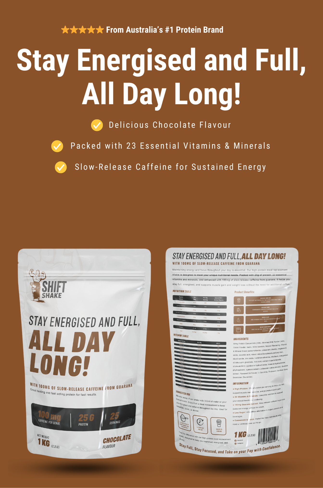 High-Protein Meal Replacement Shake with Slow-Release Caffeine.